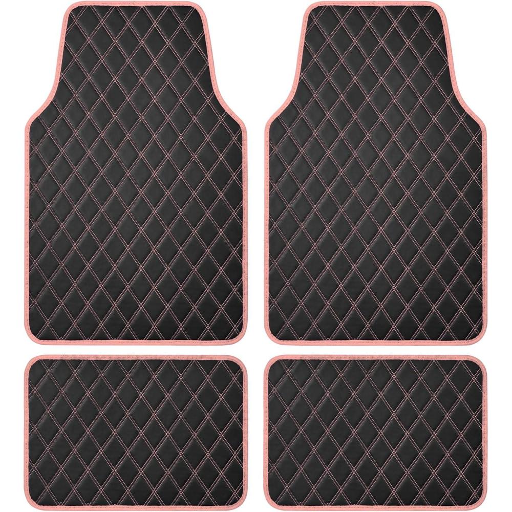 Carbella DiamondLuxe Car Floor Mats, Stylish Faux Leather Car Mats with Diamond Stitched Detail and Matching Taping, Universally Sized All-Weather Floor Mats for Cars Trucks SUV, Full Set (Purple)
