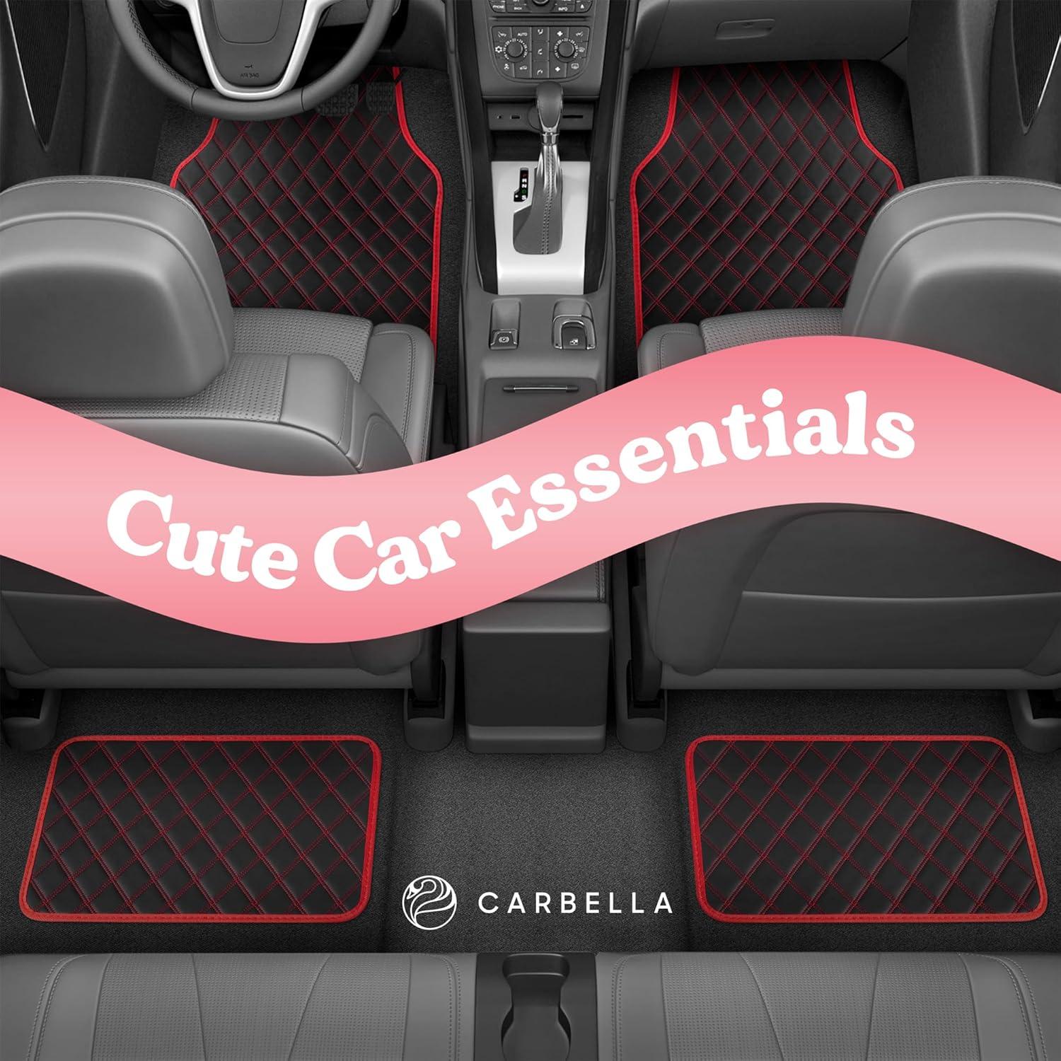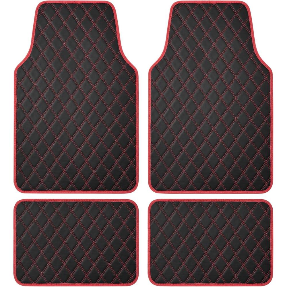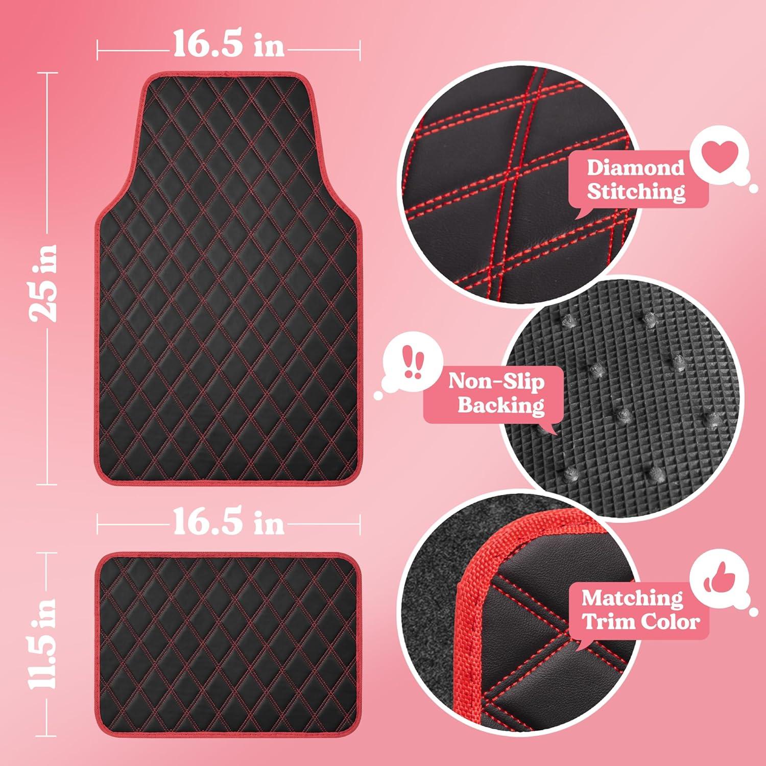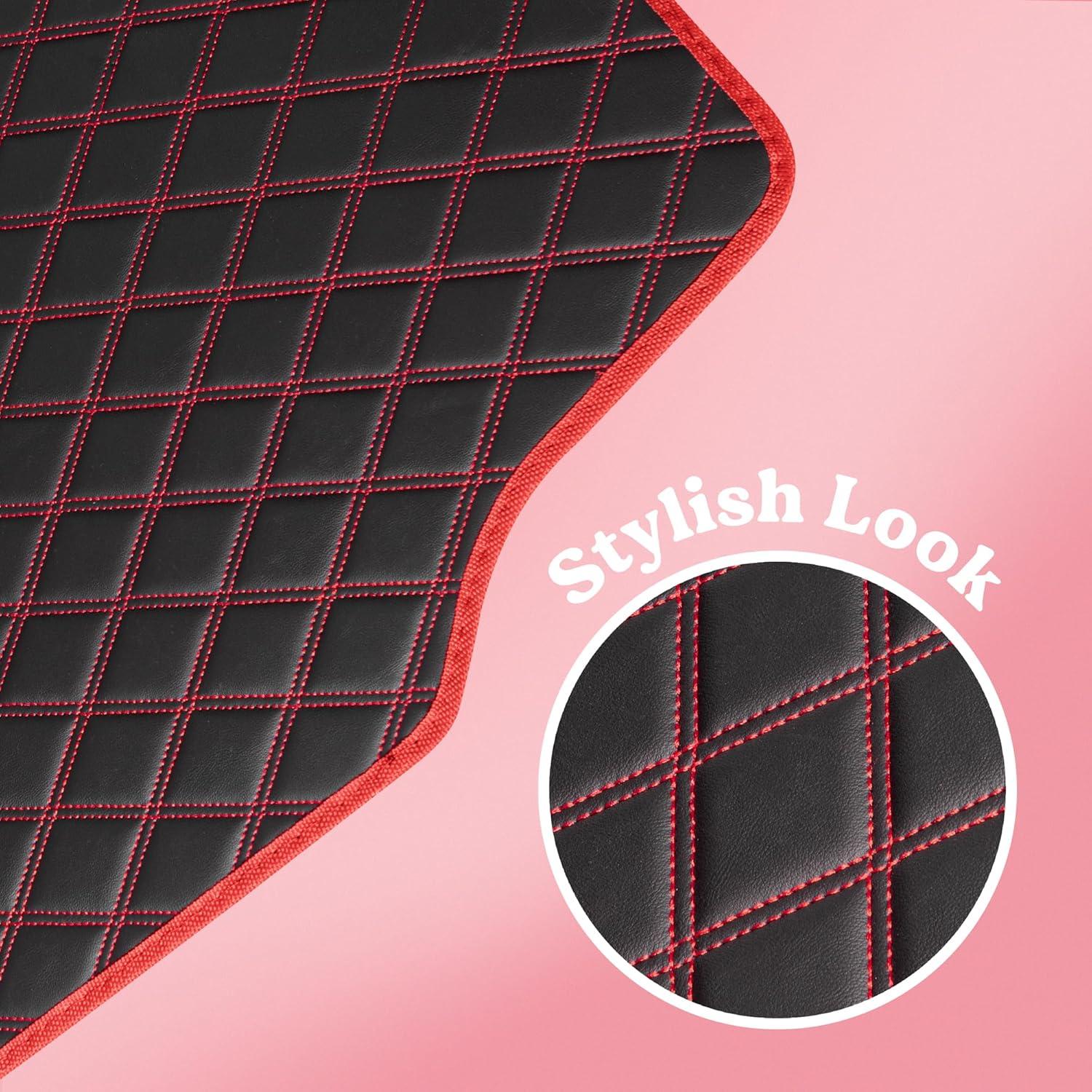Carbella DiamondLuxe Car Floor Mats, Stylish Faux Leather Car Mats with Diamond Stitched Detail and Matching Taping, Universally Sized All-Weather Floor Mats for Cars Trucks SUV, Full (Purple)(Red)