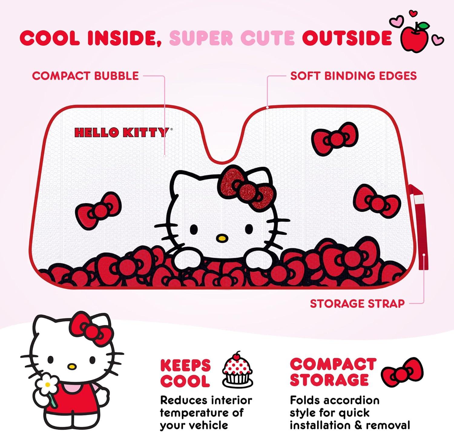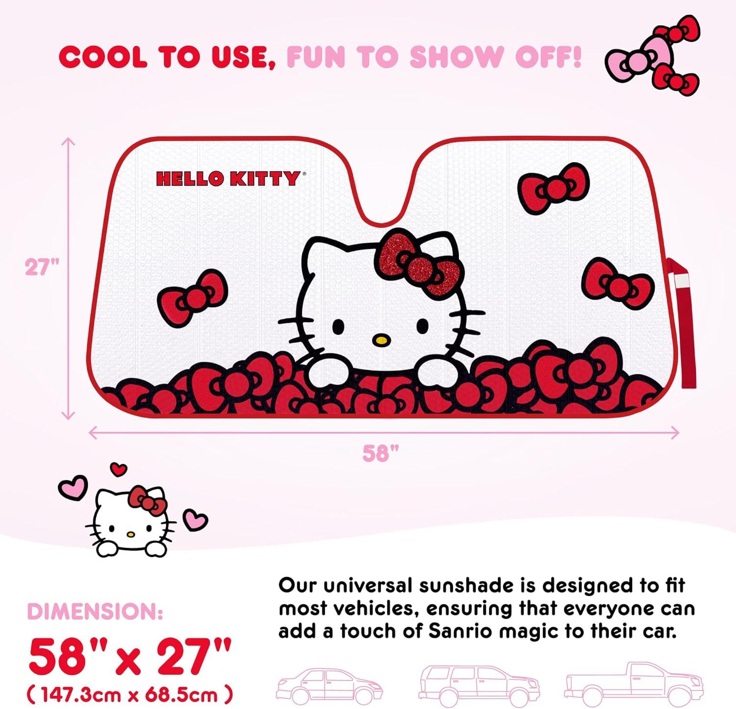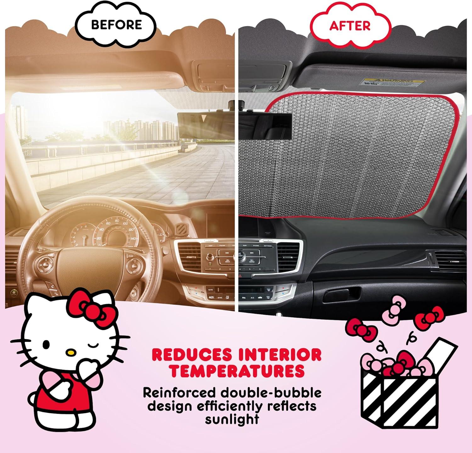 Cinnamoroll Cute Windshield Sun Shade, Official Sanrio Sun Shade for Window, Cinnamoroll Car Accessories for Women (Lemon Chill)(Summer Sailing Hello Kitty)