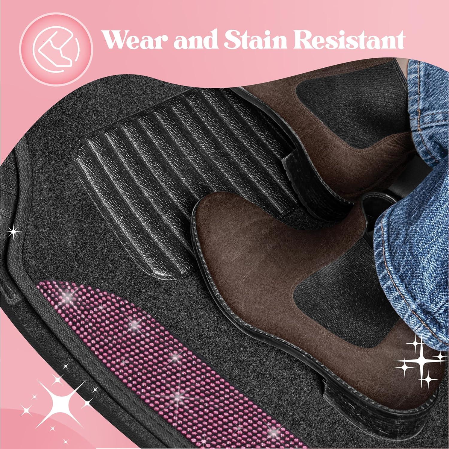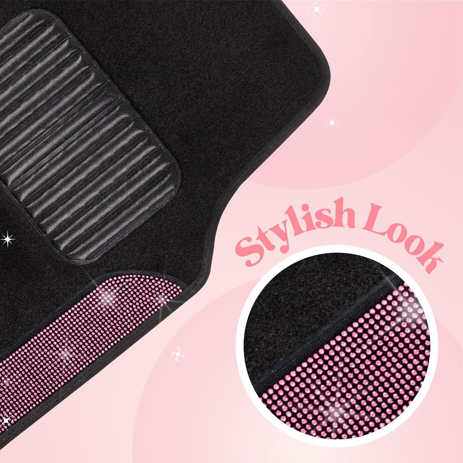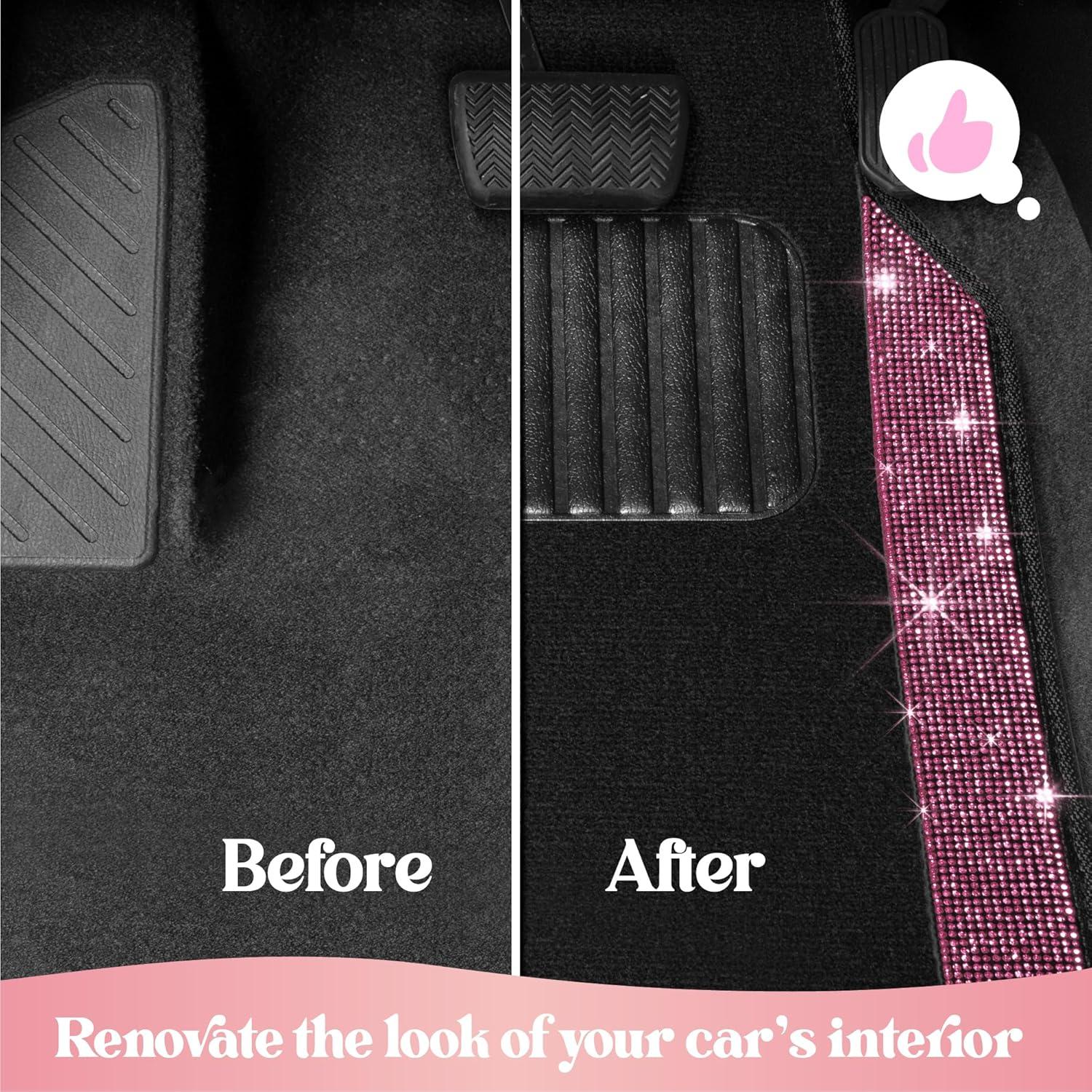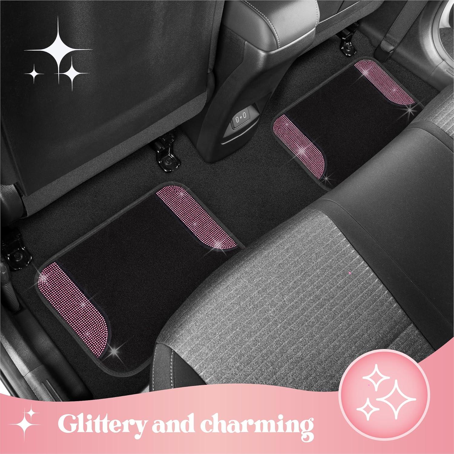PREMIUM QUALITY AND DURABILITY: Crafted from high-quality, resilient materials, these carpet floor mats are built to endure the demands of daily use while maintaining their stunning appearance. Designed for long-lasting performance, they provide robust protection for your vehicle’s flooring, shielding it from dirt, spills, and wear. The combination of durable carpet and sparkling rhinestone accents ensures these mats remain both functional and fabulous over time.