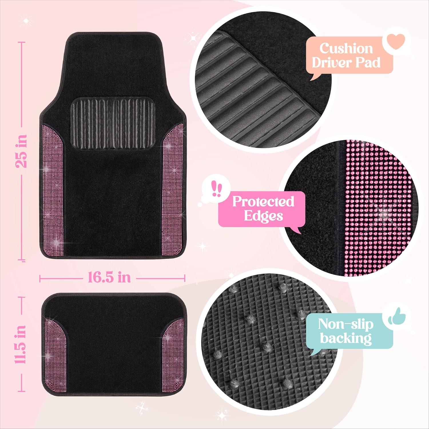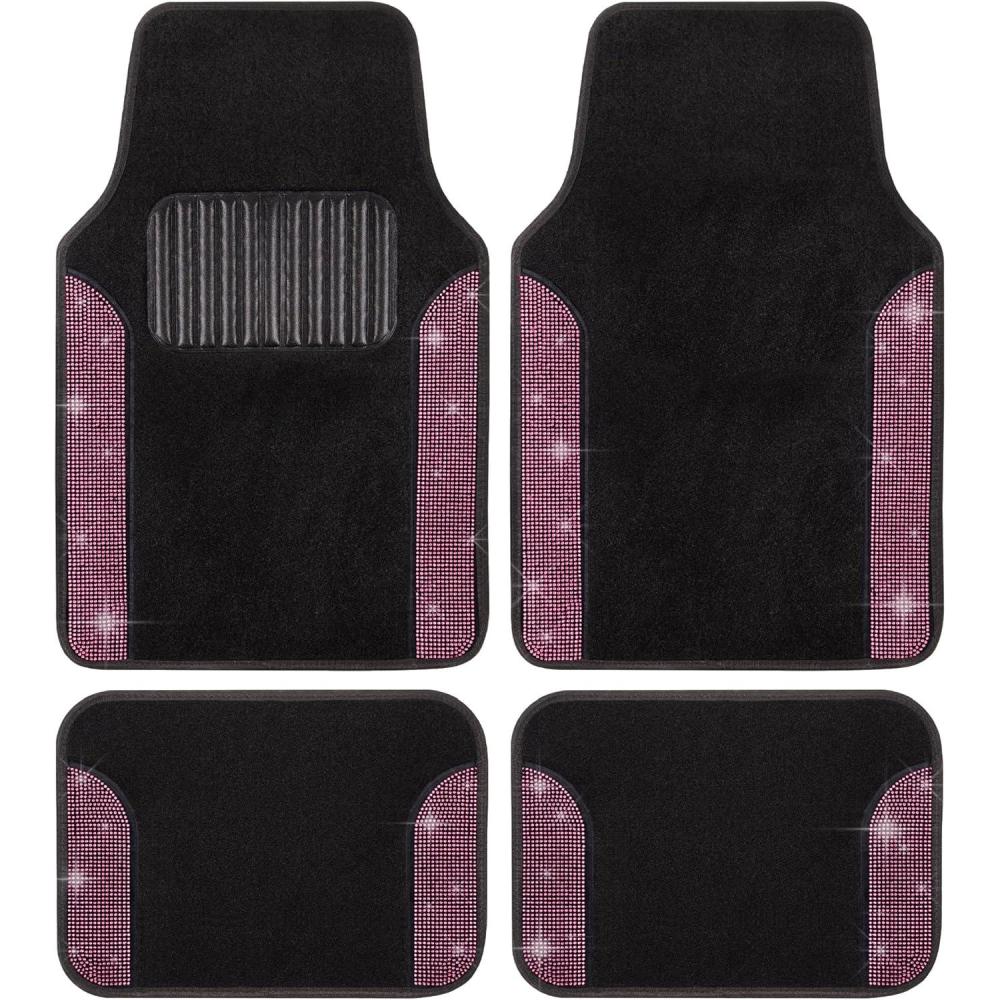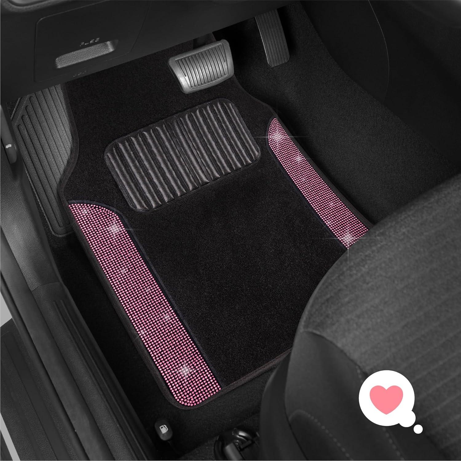 With a universal fit, these mats are compatible with most vehicle models and are easy to install, seamlessly blending into your car’s interior. The thick, plush carpet provides a comfortable and luxurious feel, while the textured surface and heel pad enhance safety by offering excellent grip to prevent slippage. Maintenance is a breeze—simply shake off dirt or give them a quick wipe or vacuum to keep them looking fresh and vibrant. Perfect for those who love cute and functional car accessories, the Carbella Diamond Bling Car Mats combine sparkling style with reliable performance, making every drive a glamorous experience.